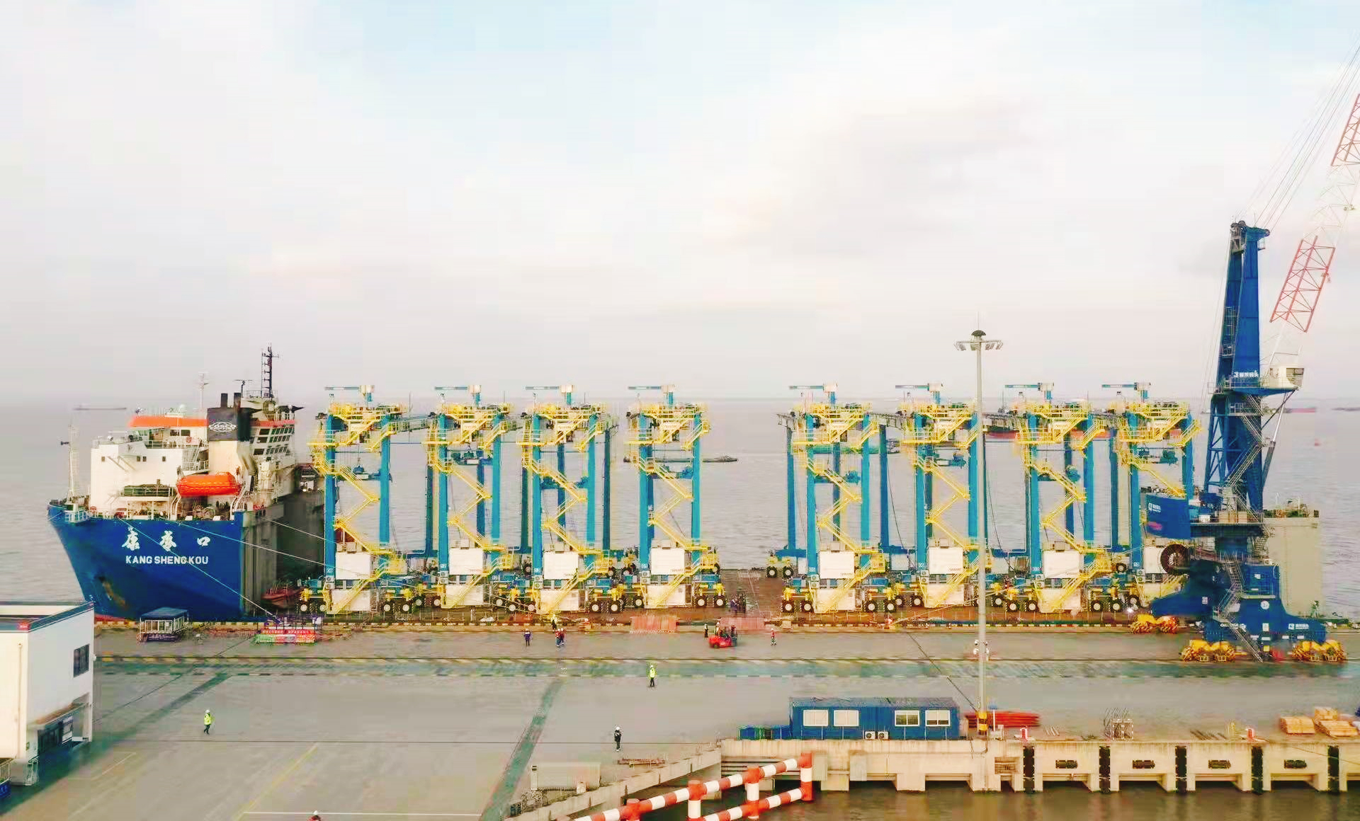 2022年元旦剛過,潤邦工業就迎來了開門紅:Total Terminals International(簡稱TTI)訂購的8臺輪胎式集裝箱起重機成功交付給Kalmar China Competence Center(簡稱KCCC)。KCCC總經理黃曉、潤邦工業常務副總經理戴文祥,副總經理查艷等出席了交機儀式。