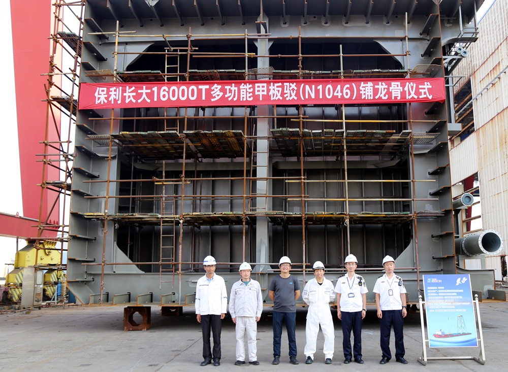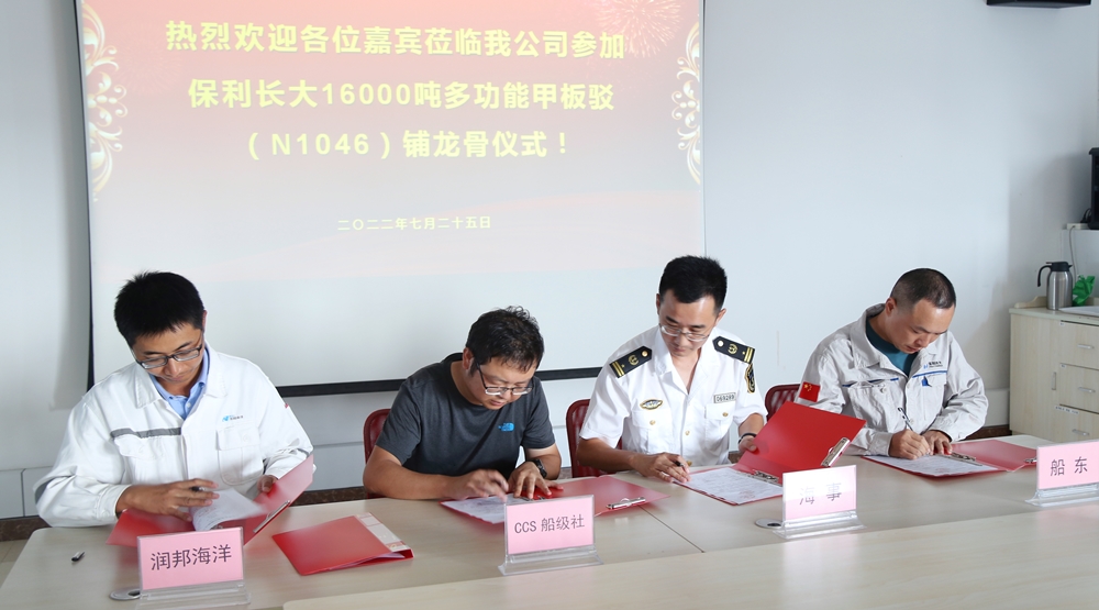 子公司潤邦海洋承建的“保利長大16,000噸多功能甲板駁項(xiàng)目”近日在潤邦海洋船臺(tái)順利完成龍骨安放,船東代表、海事代表、CCS船級(jí)社及潤邦海洋領(lǐng)導(dǎo)出席鋪龍骨儀式。