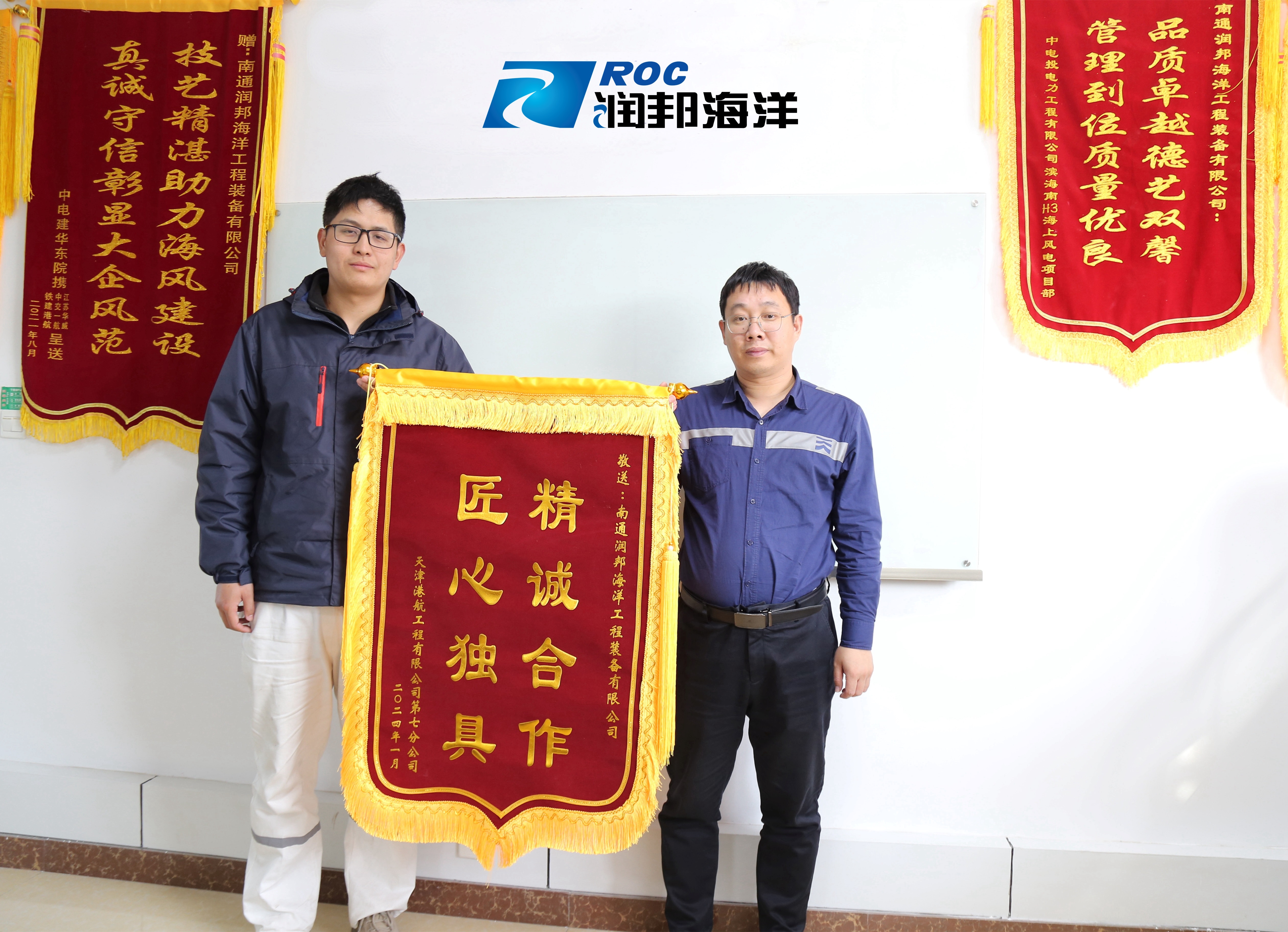 近期,子公司潤邦海洋收到客戶天津港航工程有限公司頒發的“精誠合作、匠心獨具”榮譽錦旗,這不僅是對我司在華能岱山1號海上風電項目專業表現及服務表示肯定,也是對我司全體員工極大的鼓舞和激勵。