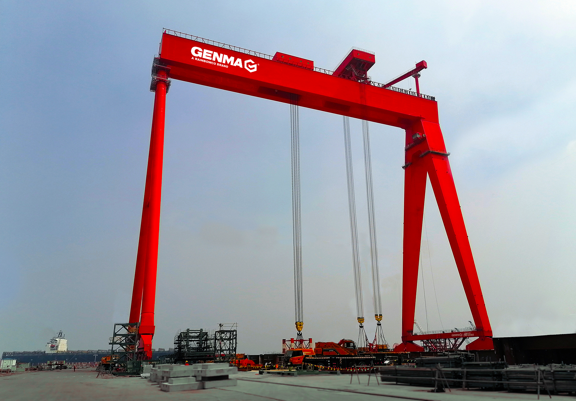 此次中標的GENMA 1200噸造船門式起重機,是潤邦重機在大型造船起重機領域的又一突破。GENMA門式起重機具備強大的起重能力和高度靈活的作業性能,能夠滿足大型船體分段和重型部件的吊裝需求。