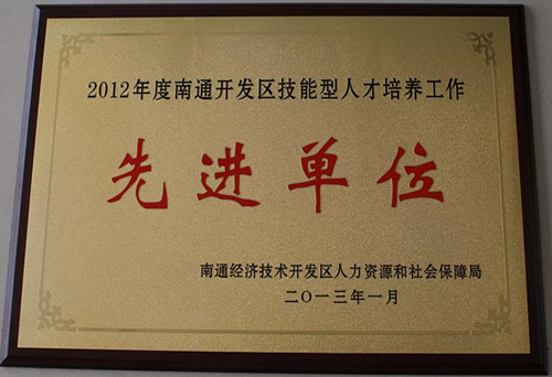 公司榮獲“2012年度南通開發區技能型人才培養工作先進單位”稱號