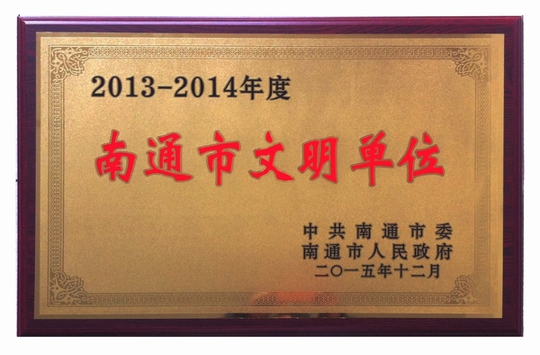 日前,潤邦股份獲得了由中共南通市委、南通市人民政府授予的“2013-2014年度南通市文明單位”稱號。