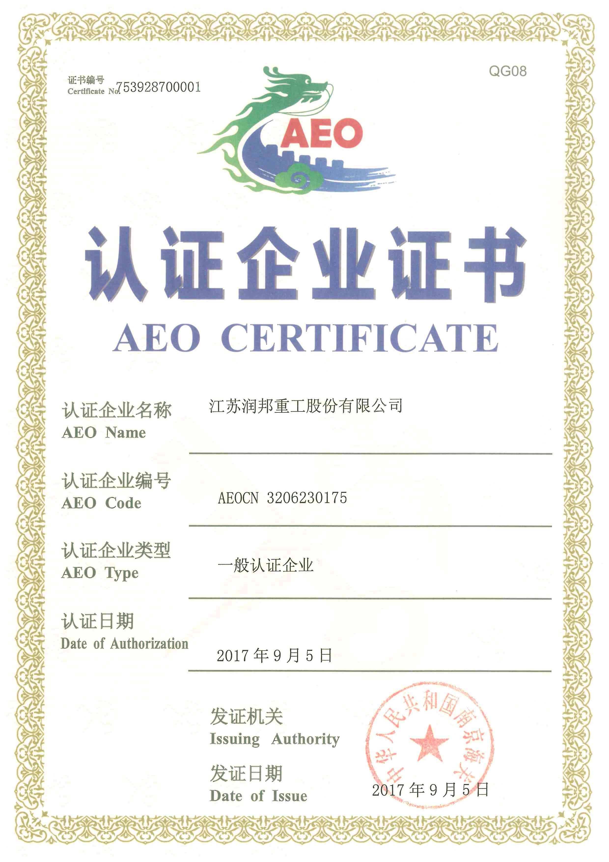 近日,潤邦股份獲得了由江蘇南京海關(guān)頒發(fā)的AEO認(rèn)證企業(yè)證書。該證書的取得,表明了潤邦股份在組織機(jī)構(gòu)、進(jìn)出口業(yè)務(wù)、內(nèi)部審計、信息系統(tǒng)和貿(mào)易安全等方面獲得了海關(guān)部門的官方認(rèn)可。