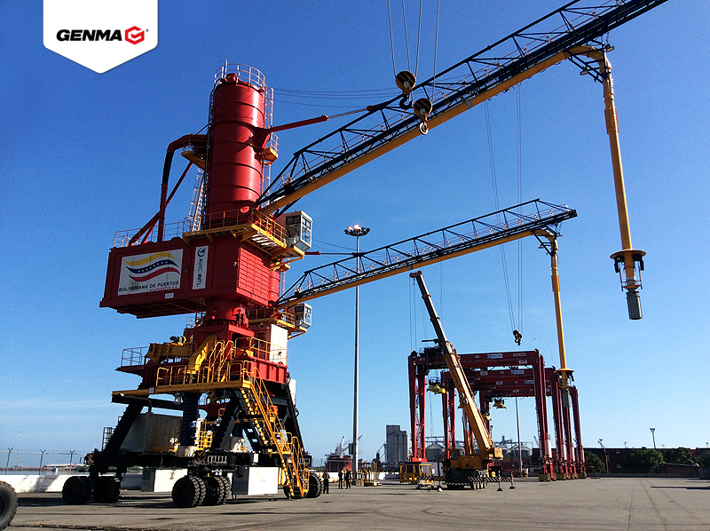 “杰馬/GENMA”品牌單臂架門座式起重機主要應用于船廠、堆場及港口碼頭等區域的物料裝卸和搬運作業,具有整機重量輕、輪壓小和運行平穩等特點。此次提供的兩臺50t門座機專業用于船廠的船舶建造和維修工作,通過各機構間智能化聯動,兩臺設備可協調工作,大大提搞了船廠的作業效率。