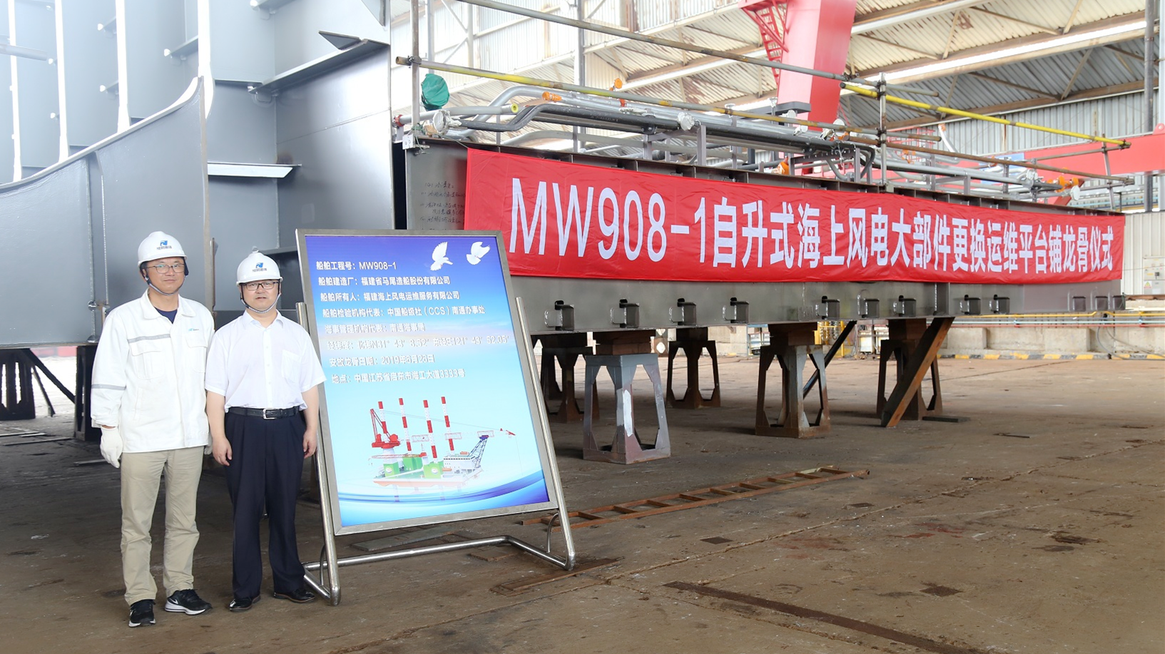近日,由潤邦海洋承建的 “600T自升式海上風(fēng)電大部件更換運(yùn)維平臺(tái)”在潤邦海洋2號(hào)船臺(tái)順利舉行了鋪龍骨儀式。