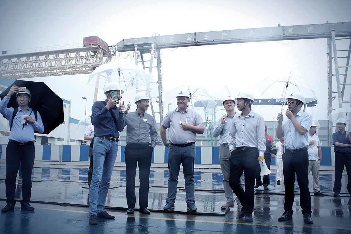 俄羅斯客戶公司技術(shù)總監(jiān)Baranov先生登上高架車仔細(xì)觀看了吸水泥的全過程,他稱贊道:“GENMA氣力式卸船機(jī)的設(shè)計(jì)很簡(jiǎn)潔,看起來非常實(shí)用,對(duì)于粉塵的抑制能力很強(qiáng)大。多級(jí)渦輪風(fēng)機(jī)技術(shù)具有較大的節(jié)能增效優(yōu)勢(shì),是散料碼頭的不二選擇。”