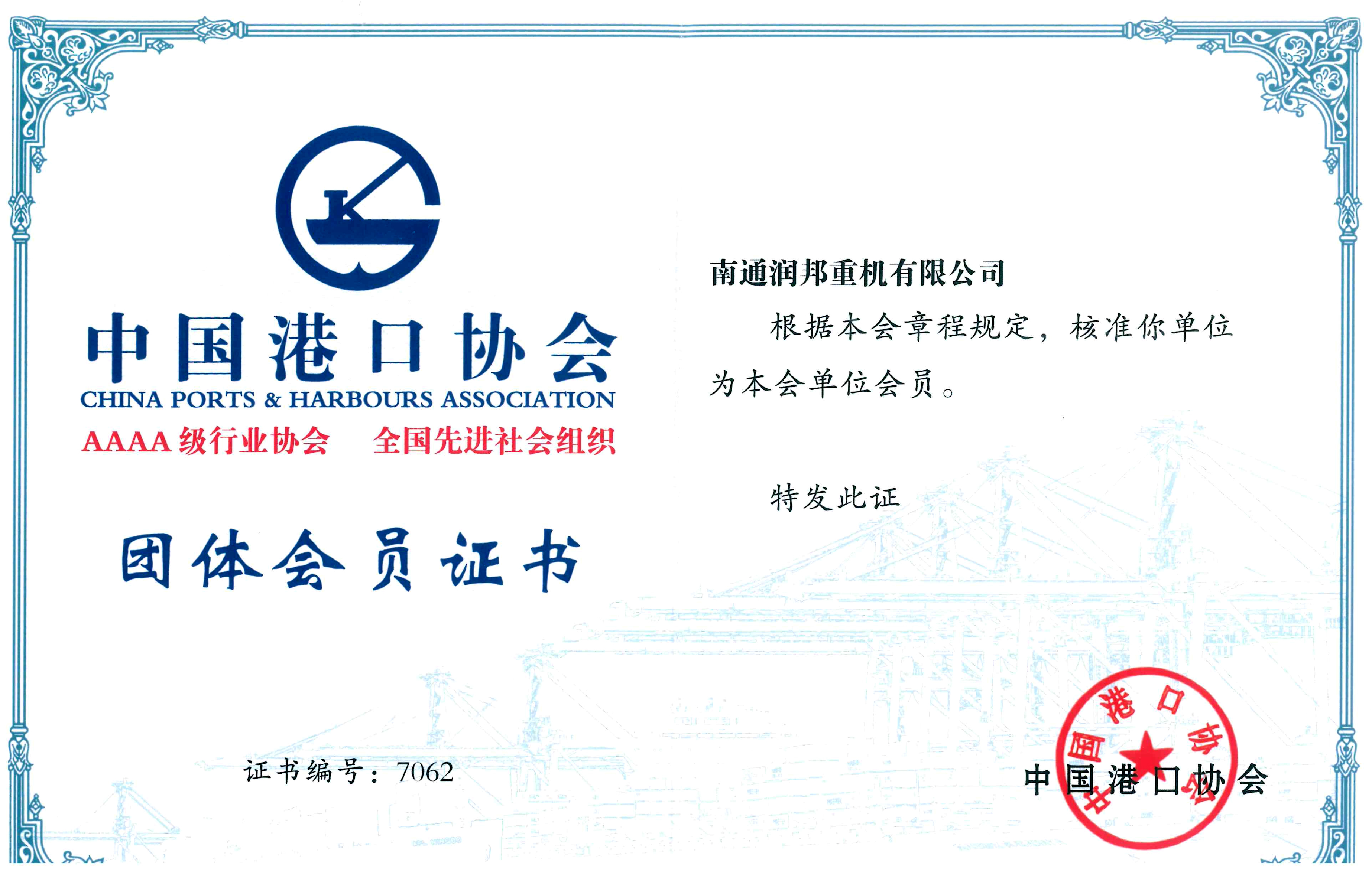 近日,子公司潤邦重機加入中國港口協(xié)會,成為其會員單位。