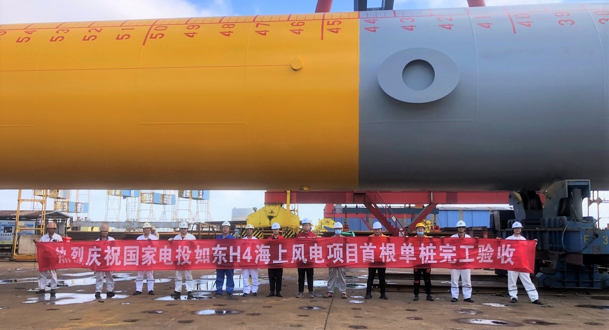 2020年5月26日,經過各方20天不分晝夜的努力,國家電投江蘇海上風力發電有限公司如東H4項目首根單樁79#樁成功發運。