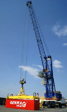 潤(rùn)邦股份自主設(shè)計(jì)研發(fā)的移動(dòng)港口起重機(jī)(簡(jiǎn)稱(chēng)MHC),可裝卸各類(lèi)雜貨(如木材、結(jié)構(gòu)件)、散料(如煤、糧食)和集裝箱等貨物。產(chǎn)品配備了先進(jìn)的防貨物偏擺、晃動(dòng)控制系統(tǒng),充分保證了裝卸效率和貨物的安全。