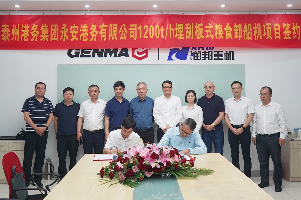 近日,泰州港務集團董事長兼長江航運協會會長蔡年生先生一行蒞臨子公司潤邦重機,與潤邦重機簽訂了國產首套埋刮板卸船機訂單。該項目的成功簽訂填補了國產埋刮板卸船機項目的空白,打破了國外技術壟斷,為永安港務實現高效糧食傳送、卸料...