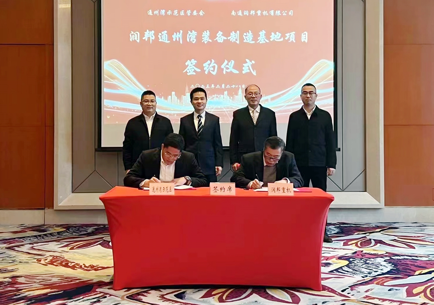 近日,子公司潤邦重機與江蘇省通州灣江海聯動開發示范區管委會(以下簡稱“通州灣管委會”)簽署了《戰略合作框架協議》,就公司擬在通州灣示范區高端裝備臨港產業園(海洋裝備產業園區)開展相關項目投資達成初步合作意向。