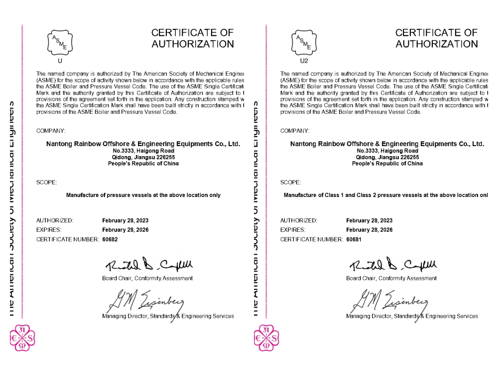 近日,美國機械工程師協會(ASME)委派的施凱豐先生、AIS徐佐宇先生、AI施漢榮先生組成聯合檢查組,對潤邦海洋進行了ASME“U+U2”取證審查,并向潤邦海洋頒發ASME “U+U2”鋼印證書。