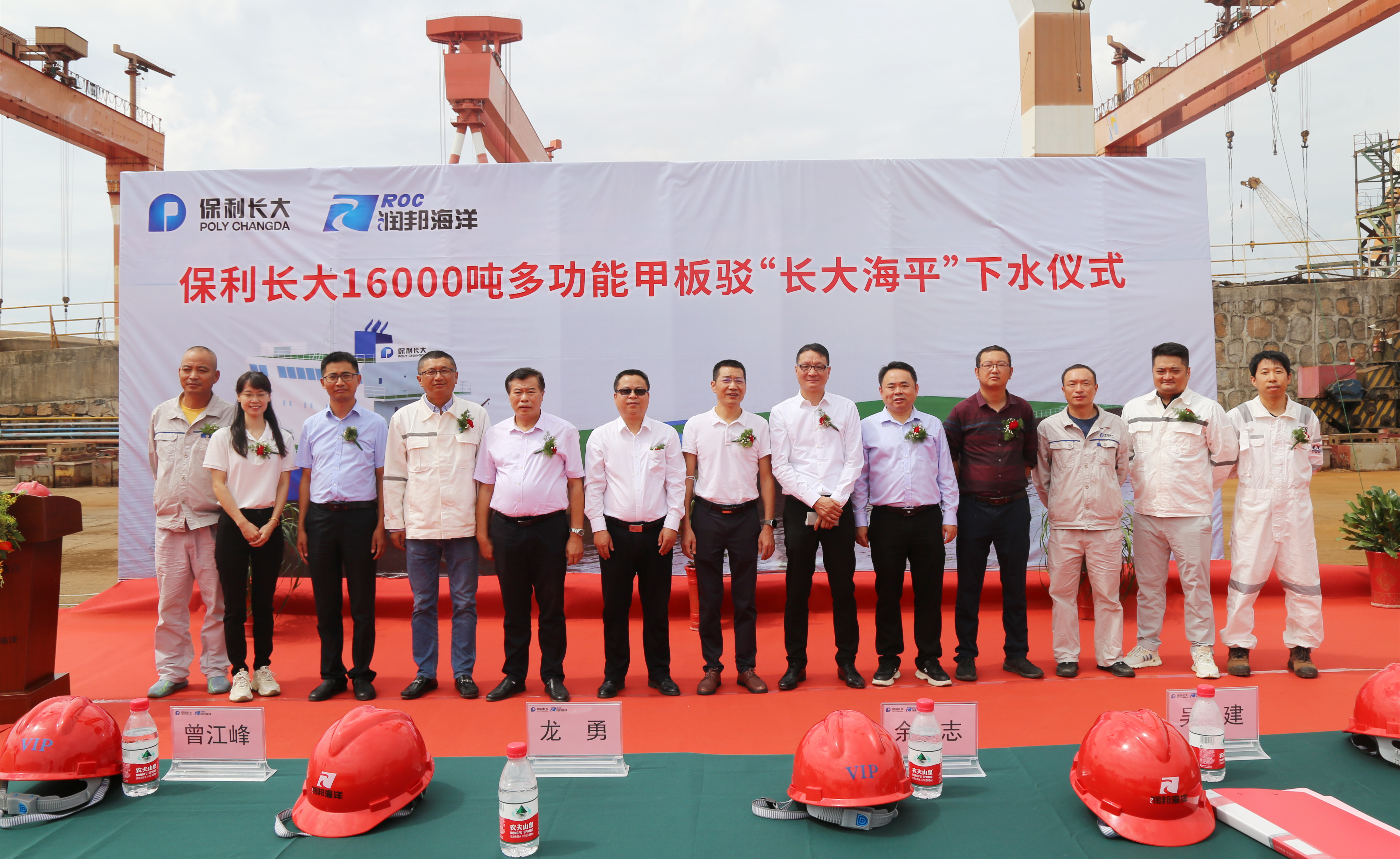 2022年9月25日11點38分,由潤邦海洋承建的保利長大16000噸多功能甲板駁“長大海平”吉水儀式在潤邦海洋隆重舉行。