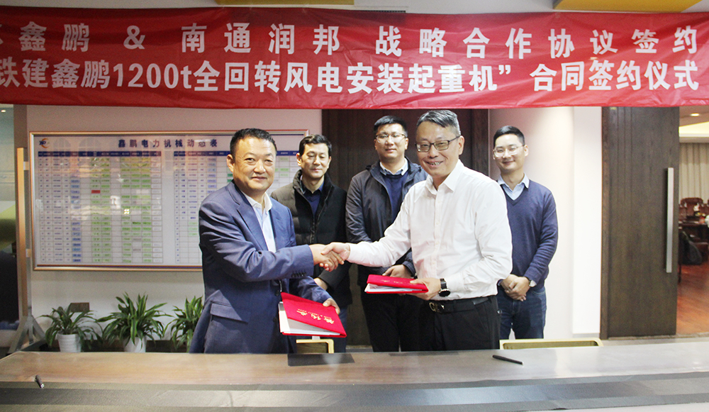 近日,潤邦重機與江蘇鑫鵬電力工程有限公司(簡稱:鑫鵬電力)正式簽訂了一臺GENMA 1200噸全回轉(zhuǎn)海洋起重機(簡稱:GENMA海洋起重機)訂單合同,該訂單產(chǎn)品將用于海上風電未來15兆瓦大功率風機的吊裝作業(yè)。