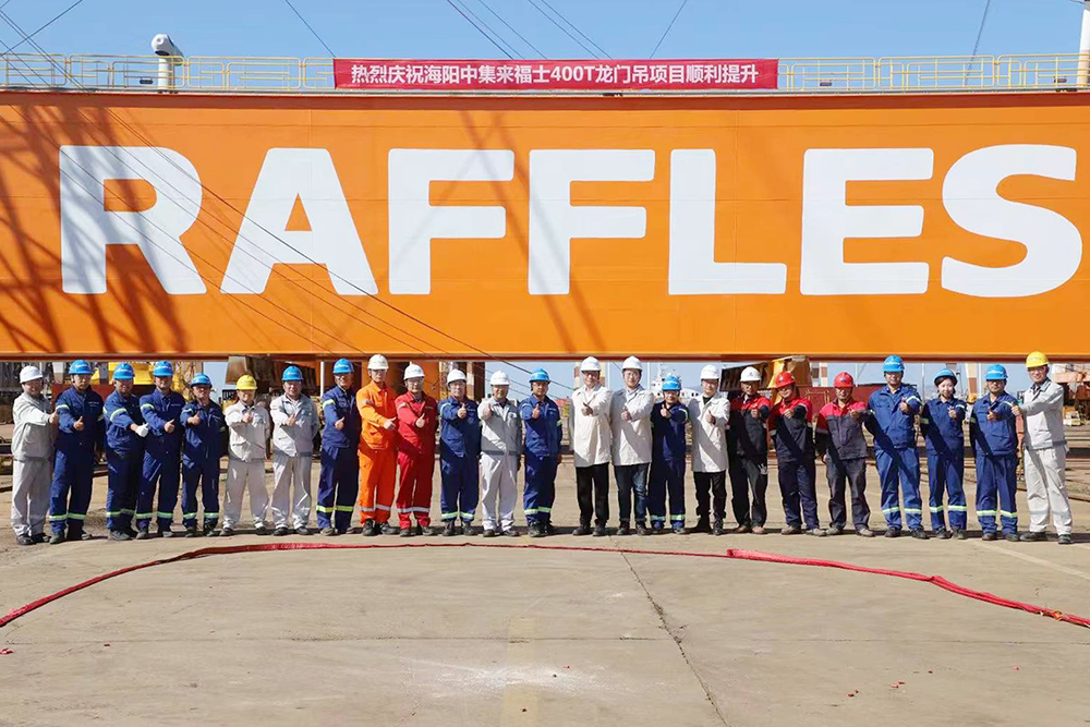 近日,由潤邦重機為海陽中集來福士海洋工程有限公司傾力打造的一臺GENMA400噸造船門式起重機(簡稱:門式起重機)順利交付。該產(chǎn)品主要用于船舶制造過程中的吊裝作業(yè),具備良好的升降、定位、調(diào)運功能。