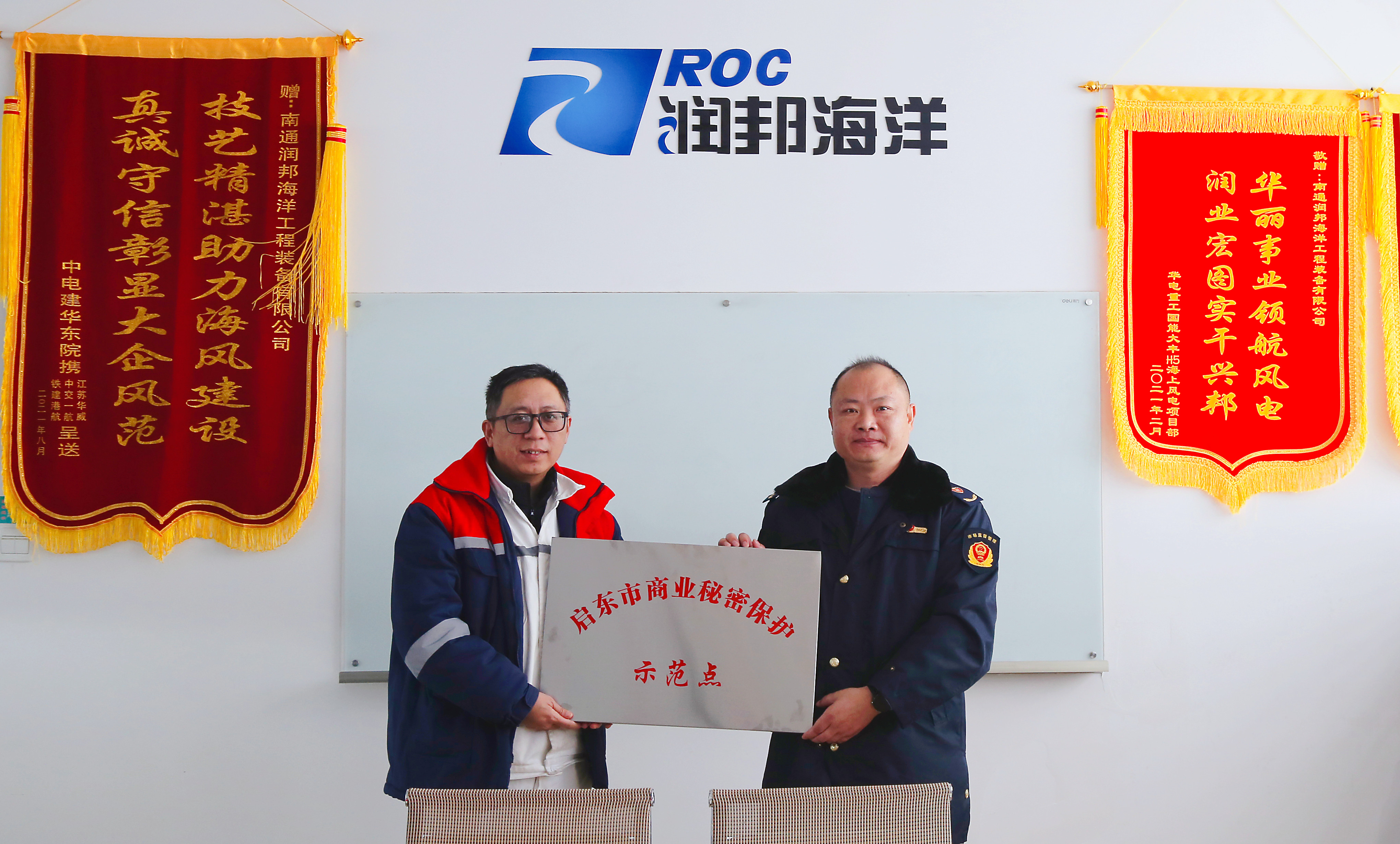 近日,南通潤邦海洋工程裝備有限公司通過考核驗收,正式掛牌成為市級商業(yè)秘密保護示范點。啟東市市場監(jiān)督管理局寅陽分局局長黃飛為企業(yè)授牌,潤邦海洋相關(guān)負責人出席授牌儀式。