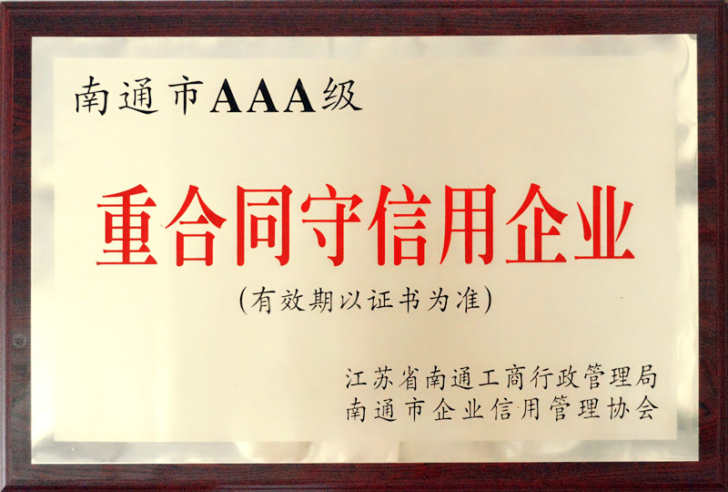 近日,江蘇普騰獲得由南通市工商行政管理局及南通市企業信用管理協會聯合頒發的“AAA重合同守信用企業證書”。