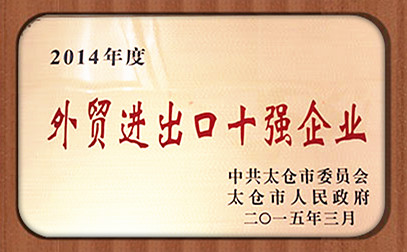近日,在太倉(cāng)市經(jīng)濟(jì)工作會(huì)議暨2014年外貿(mào)進(jìn)出口企業(yè)表彰大會(huì)上,子公司潤(rùn)邦卡哥特科被授予“2014年度外貿(mào)進(jìn)出口十強(qiáng)企業(yè)”榮譽(yù)稱號(hào)。