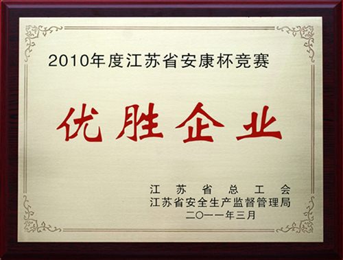 近日,潤邦股份獲得了由江蘇省總工會、江蘇省安全生產監督管理局舉辦的2010年度全省“安康杯”競賽優勝企業稱號。