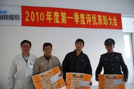 4月16日,潤邦股份在培訓三樓召開公司2010年第一季度評優(yōu)表彰大會,大會首先通過PPT模式向各位員工通報了公司第一階段安全形勢并由安全環(huán)境部部長頒發(fā)了第一季度安全達標團隊及安全標兵獎項