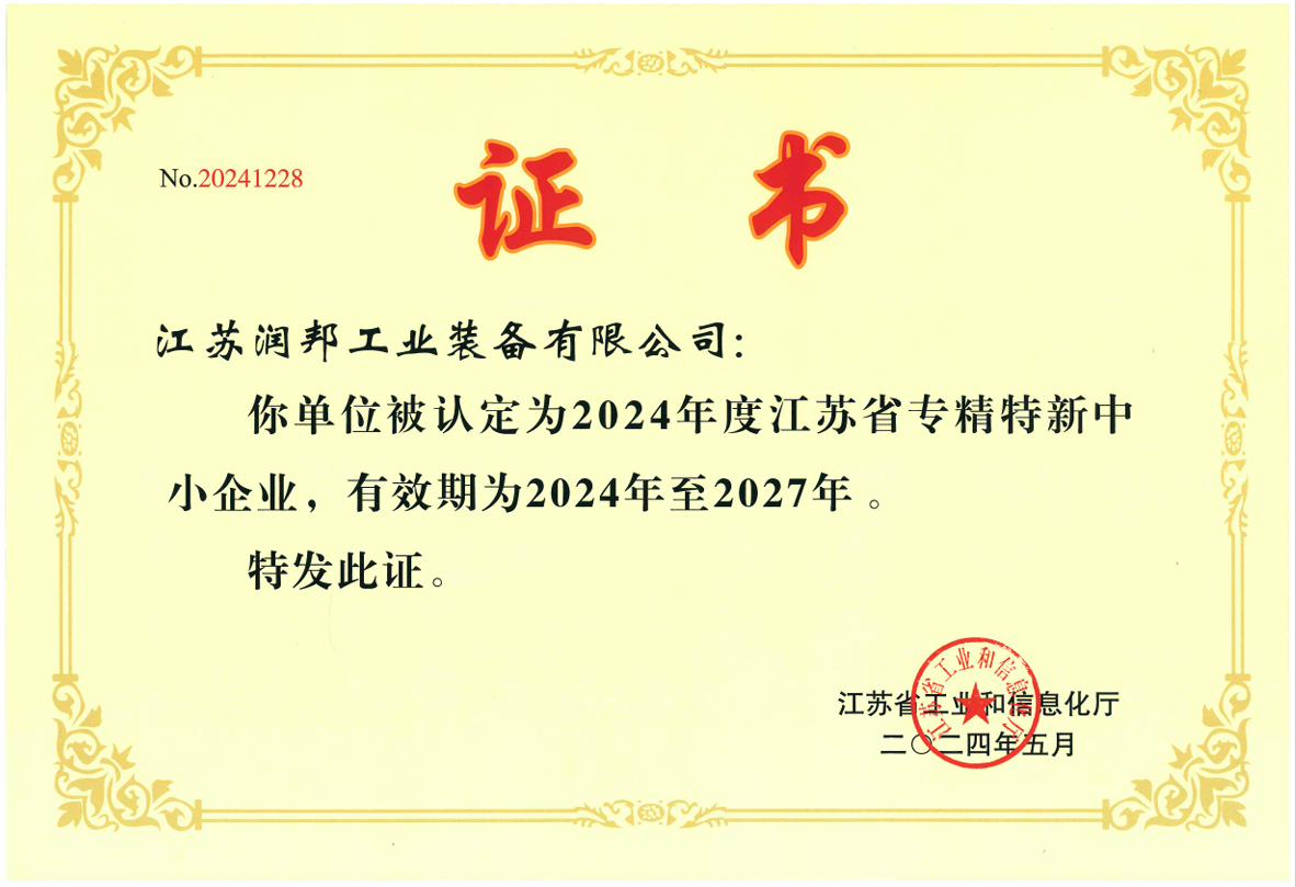 近日,江蘇省工業和信息化廳正式公布了2024年度江蘇省專精特新中小企業名單,江蘇潤邦工業裝備有限公司憑借其卓越的技術創新能力、市場競爭力和品牌影響力,成功入選,標志著公司在智能制造和專用設備制造領域取得了顯著成就。