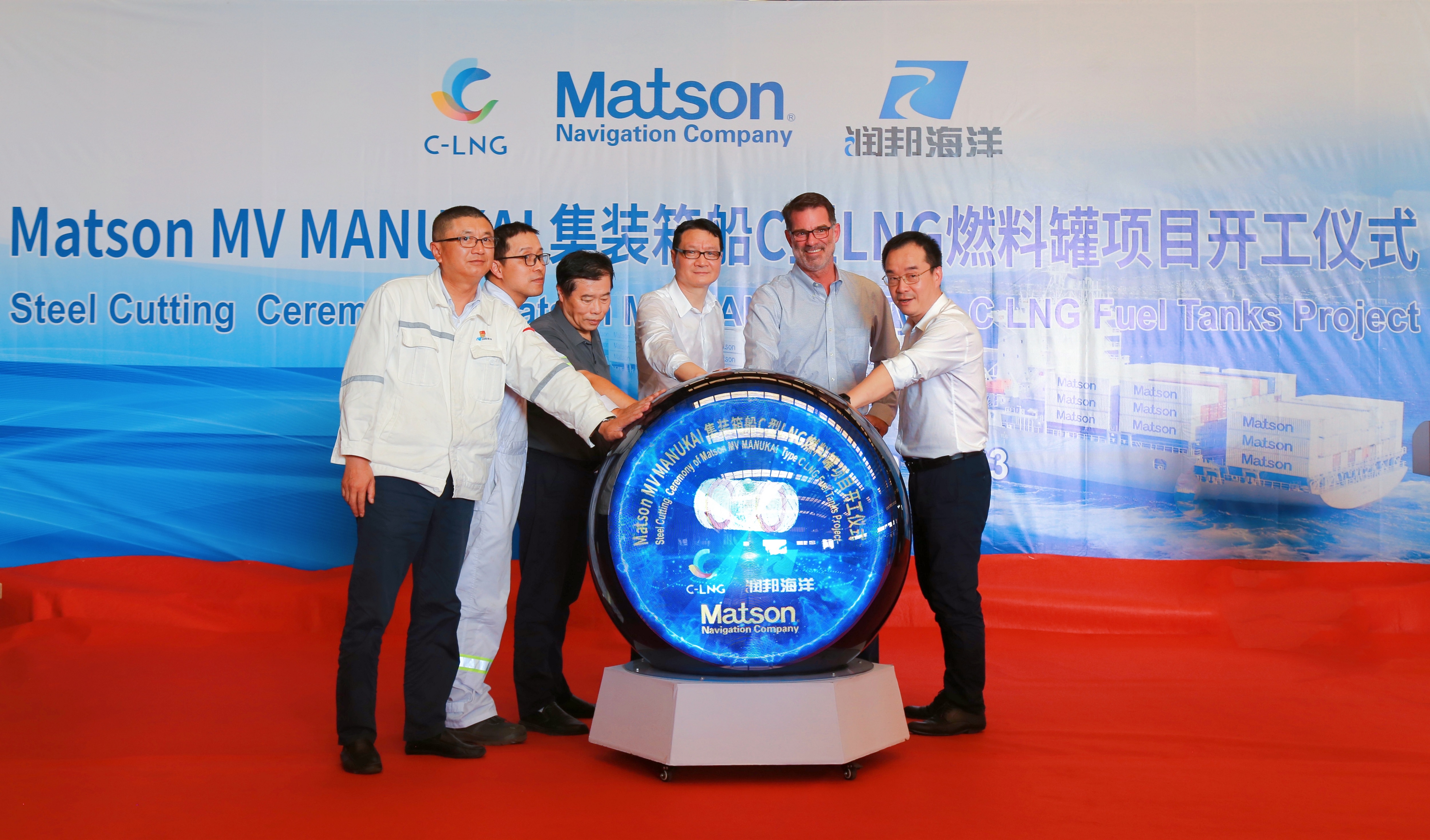 近日,子公司潤邦海洋承接國外客戶的不銹鋼LNG燃料罐的開工儀式在潤邦海洋的下料車間隆重舉行。Matson集團 Gartz先生,ABS驗船師蔣鵬先生,C-LNG總經(jīng)理解利來先生,潤邦股份總裁吳建先生等相關(guān)領(lǐng)導(dǎo)出席儀式,共同見證這一重要時刻。