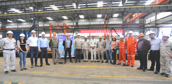 近期,子公司潤邦海洋4000T自航重吊浮吊船在內業車間順利開工,IHC船東代表、英國勞氏船級社代表及公司項目組成員參加了開工及簽字儀式。