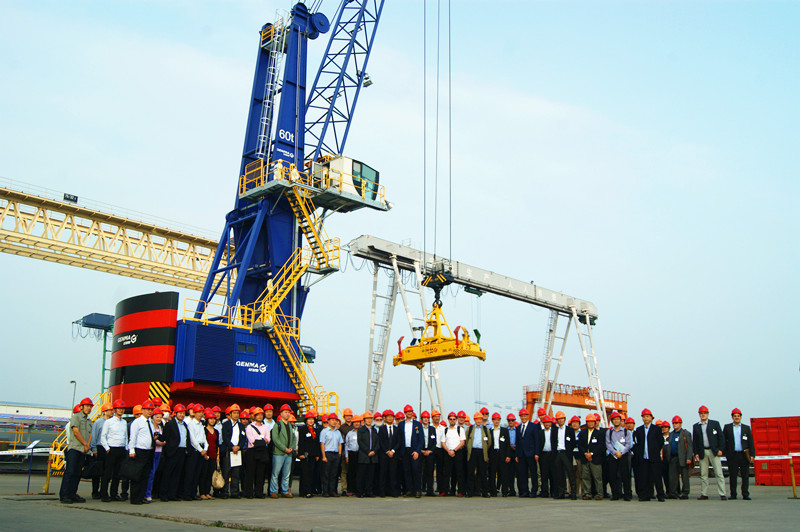 日前,全球港口機械制造商協會(PEMA)一行90人匯聚潤邦重機,重點參觀了名噪一時的“杰馬”品牌移動式港口起重機(MHC)。