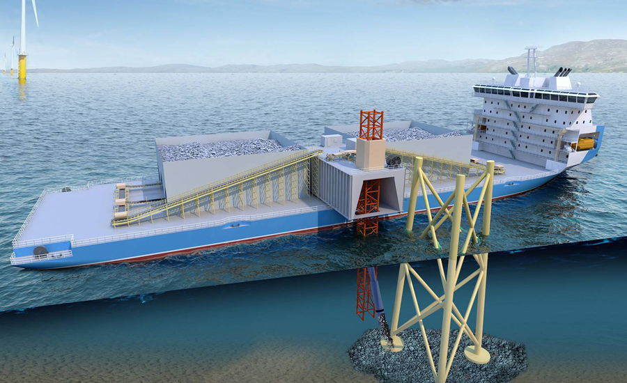 拋石船:精準定位、自動拋石,主要用于海上風電基礎單樁及海纜的固樁、護纜拋石等作業。