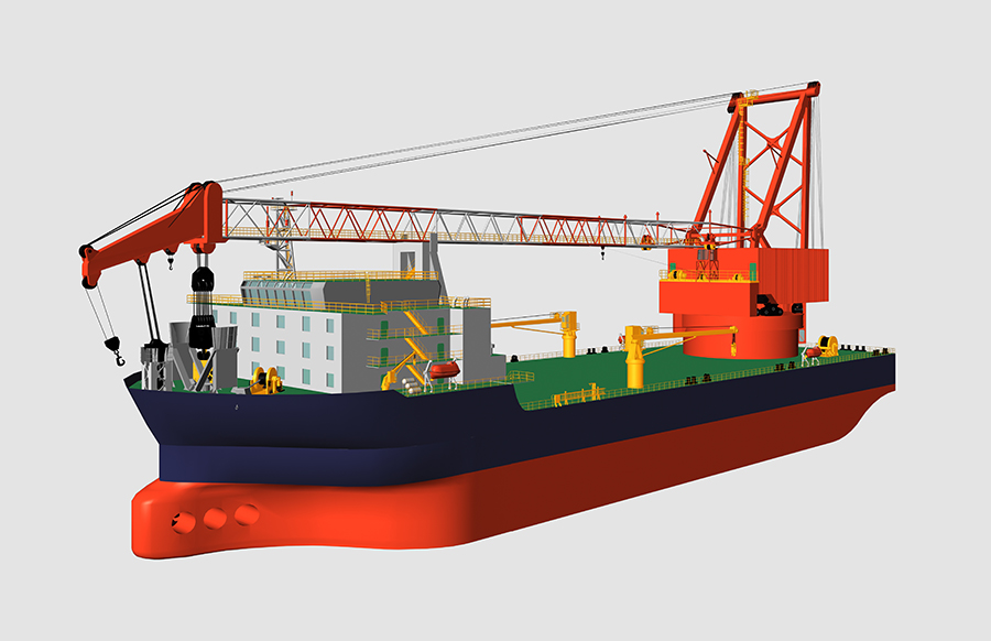 3000T浮吊船:主要用于10-16MW深海海上風電設施(塔筒、葉片、主機、導管架等)的安裝、維護及打撈作業,也可用于跨海公鐵大橋、海底隧道的施工作業。